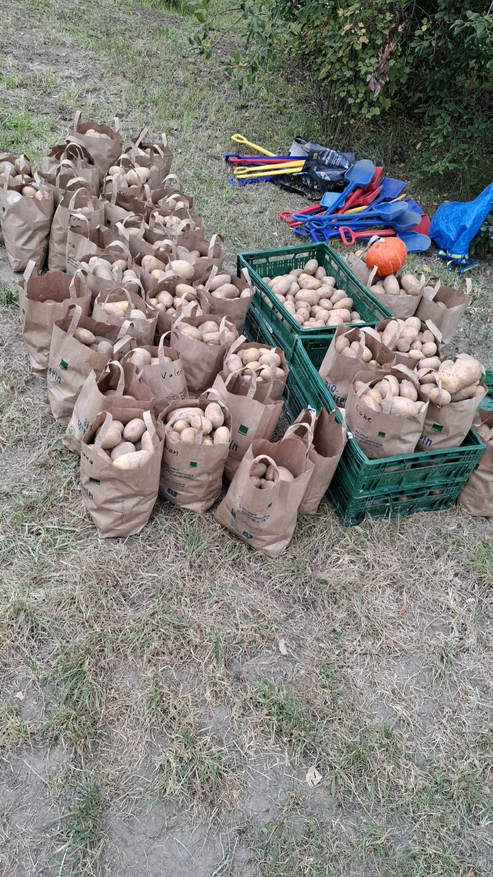 Am Ende machten sich alle Kinder mit Tüten voller Kartoffeln und glücklichen Gesichtern auf den Heimweg. Die selbst geernteten Kartoffeln aus dem eigenen Anbau der Familie Merz waren ein besonderer Schatz, den die Kinder stolz nach Hause trugen.
